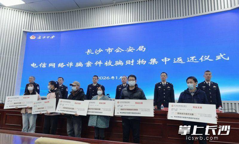 成效:2025年追赃挽损1.4亿元长沙市公安局副局长李军龙在仪式上介绍,2025年全市公安机关共追赃挽损1.4亿元,同比上升29.6%。9日返还的财物都是2025年通过预警劝阻、案件侦办追回的被骗资金和物品。“我们将追赃挽损作为检验反诈工作质效的‘硬指标’。”李军龙表示,长沙公安将返还被骗财物作为回应群众期盼的有力举措,穷尽一切手段能追尽追,最大限度为人民群众挽回损失。记者从仪式上获悉,2025年,长沙市公安机关统筹推进打防管治宣各项措施,全力构建“全警反诈、全社会反诈”工作格局,有力遏制全市电诈发案高发趋势,深入开展“百日会战”“雷霆”等专项行动,共破获电诈案件5985起,刑事打处1872人。同时,警方分级分类处置预警信息493.3万起,创新“六方联动”预警劝阻法,全市连续17个月实现资金预警劝阻预后“零被骗”。现场除了集中返还现金外,还有一批黄金等财物。如天心公安分局办理的李某某被虚假网络投资理财诈骗案,警方全额追回李某某被骗的价值38.9万元的黄金。提醒:面对骗局做到“三不一多”眼下,诱导受害人购买并邮寄黄金、烟酒、高档电子产品等,成为诈骗分子转移涉诈资金的新手段。相较银行转账,邮寄黄金等实物使涉诈资金难以通过银行被公安机关“截流”。针对这一新趋势,长沙专门建立了全市联防联控工作机制,强化警邮、警金联动。2025年,长沙公安共拦截涉诈包裹355个,为群众挽回现金、黄金损失2332余万元。长沙公安还推进科技赋能,专题研究技术反制,封堵涉诈APP和网址3.2万个,关停涉诈账号6000个,累计发现预警潜在受害人42.9万人次。96110反诈咨询专线全年累计接听市民来电36.7万次,外呼预警宣防13.5万次。然而,电诈犯罪形势依然严峻。“当前,电诈犯罪已成为刑事犯罪的主流,特别是刷单返利、虚假网络投资理财、冒充电商物流客服、冒充领导熟人这4类案件发案、案损占所有电诈案件比例分别高达70.4%、83.3%。”长沙市反诈中心宣传防范中队中队长翟安提醒广大市民,主动学习、切实提升识诈防骗意识,做到“三不一多”:未知链接不点击、陌生来电不轻信、个人信息不透露、转账汇款多核实,“时刻谨记:天上不会掉馅饼,网上处处是陷阱。”“我们将紧盯电信网络诈骗形势和变化,持续创新突破,不断提升公安机关新质战斗力,推动我市打击治理电信网络诈骗工作再上新台阶。”长沙市公安局刑侦支队支队长丁鹏飞表示,下一步,长沙公安将不断提升打击质效、坚决压案降损、推进联防联控,坚决遏制电诈案件高发势头,全力守护百姓的“钱袋子”。举报/反馈